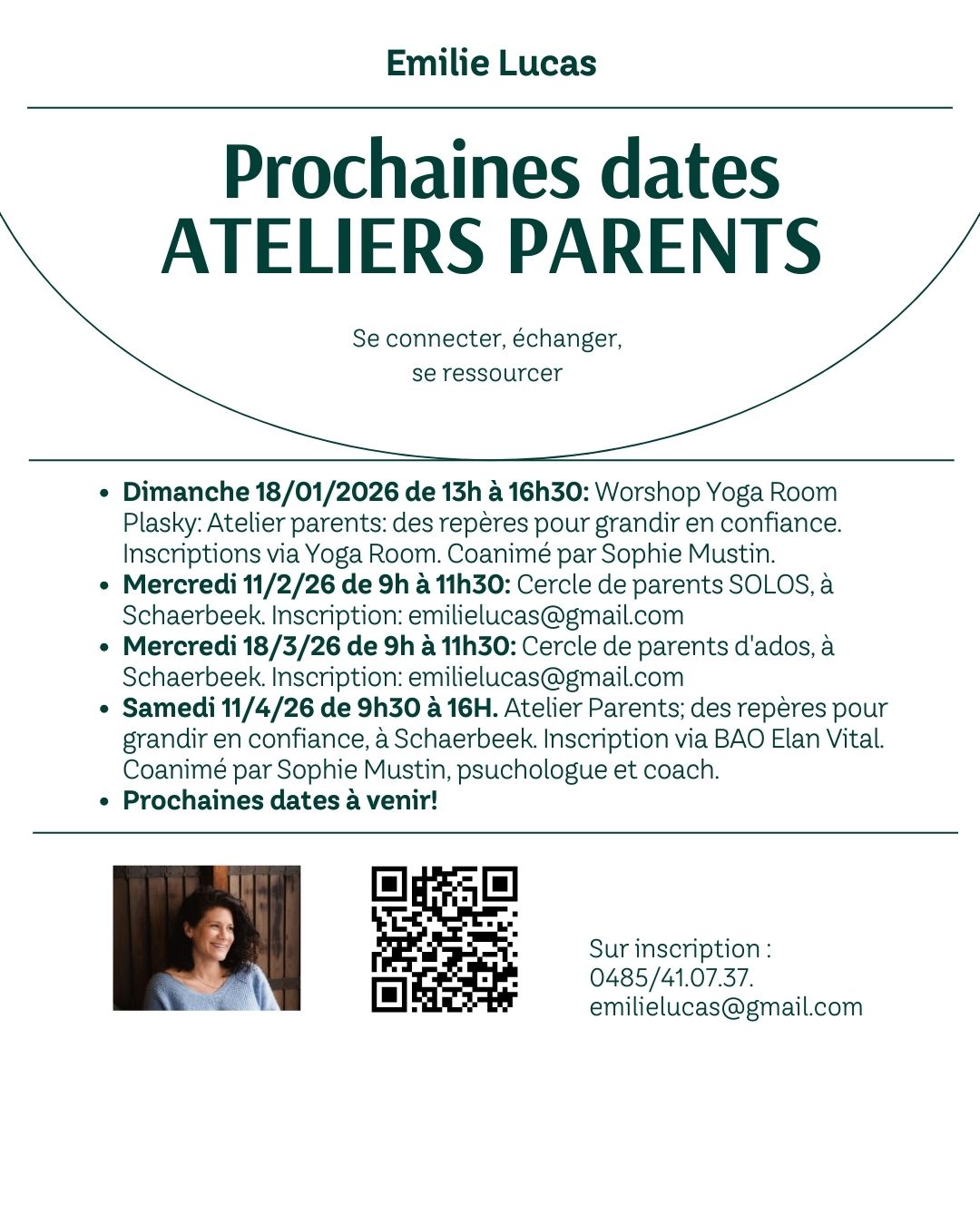 Animé par Emilie Lucas, diplômée en psychologie clinique, certifiée en coaching professionnel (BAO Elan Vital), maman concernée par les enjeux éducatifs, passionnée par les échanges entre parents et la transmission d'outils pour nourrir joie et sérénité.